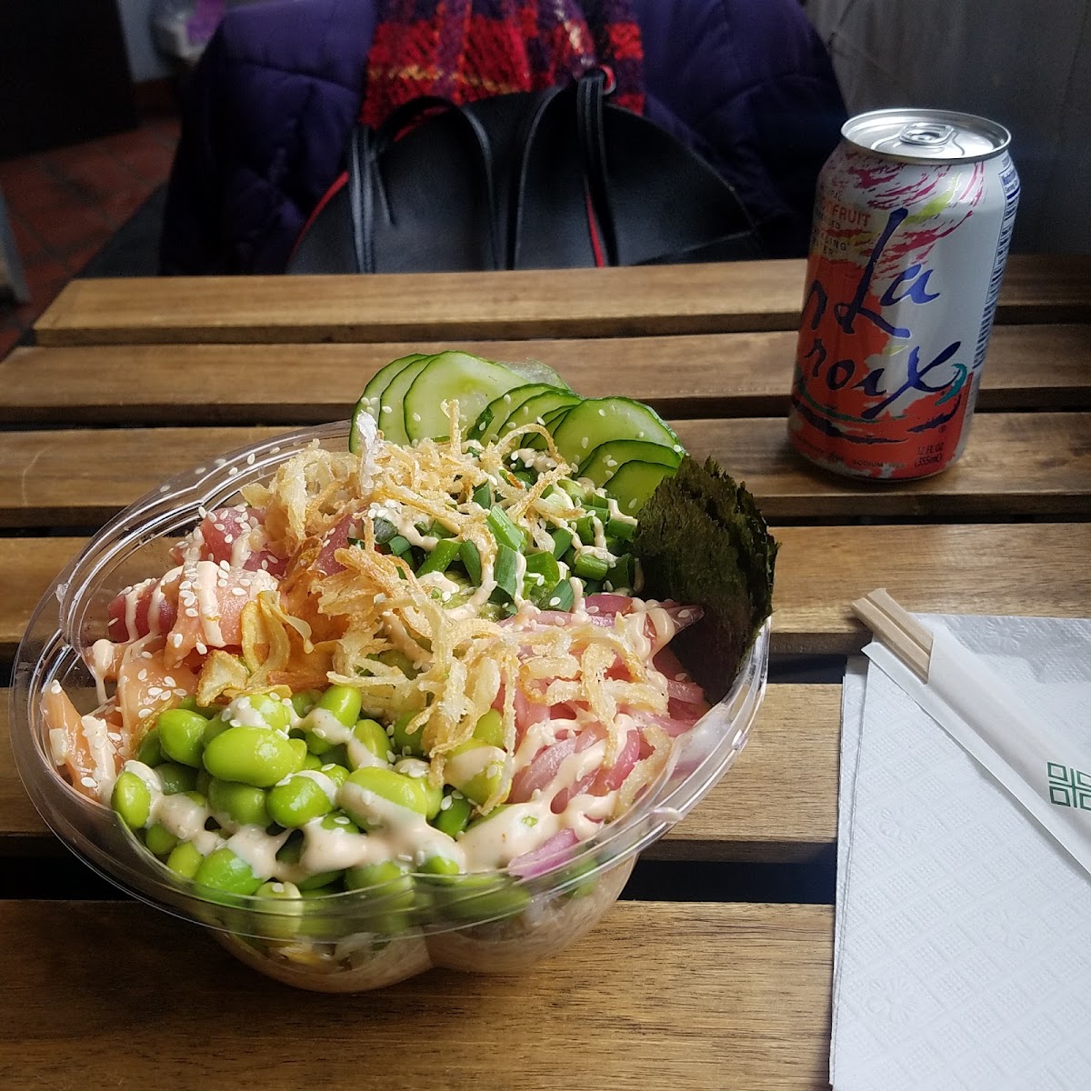 Choice of 1 protein, brown rice, OG ponzu, pickled red onion, edamame, cucumber, choice of crunch and gluten free Sriracha mayo. Choose a style: Tuna, Salmon, Tofu. Choose a crunch: Shallot Crunch, Garlic Crunch. Would you prefer vegan sriracha mayo?: Substitute Vegan Sriracha Mayo